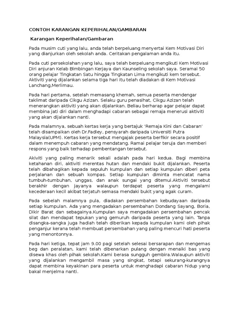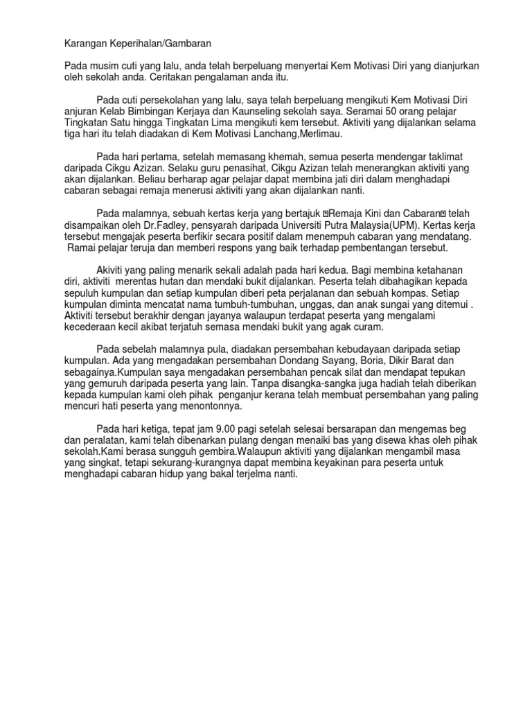 Contoh Karangan Keperihalan Pengalaman Kem Motivasi